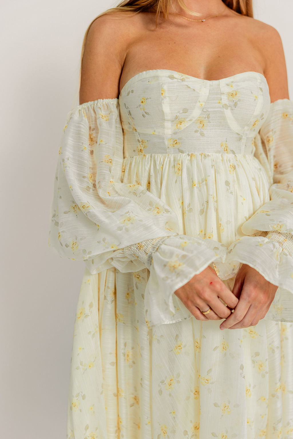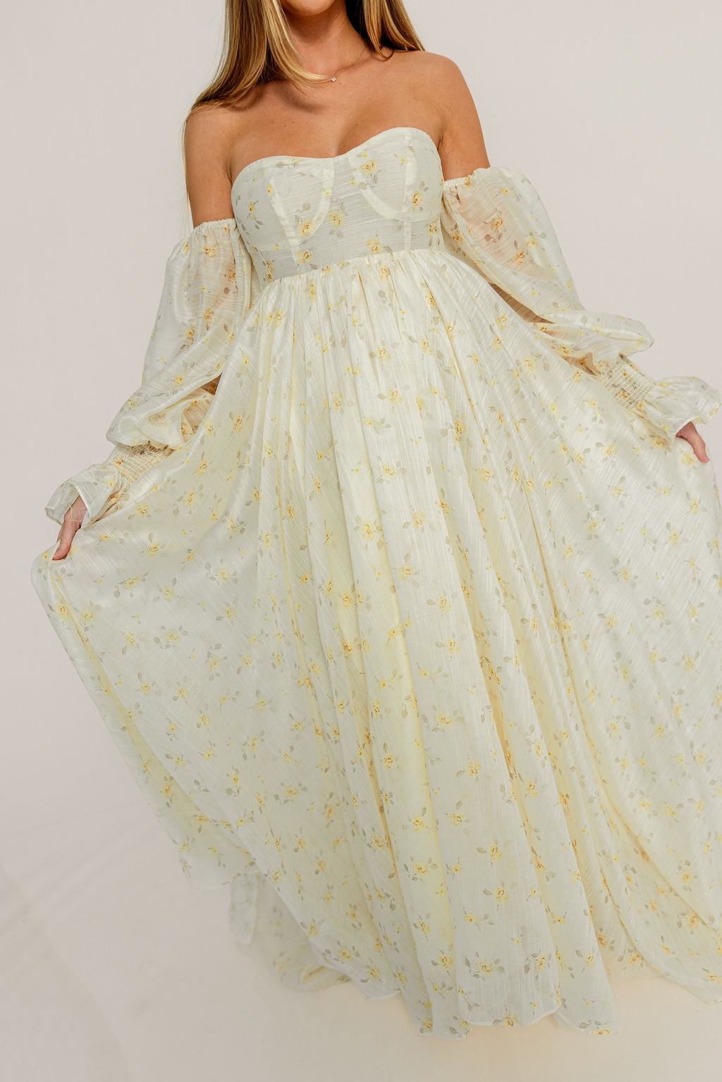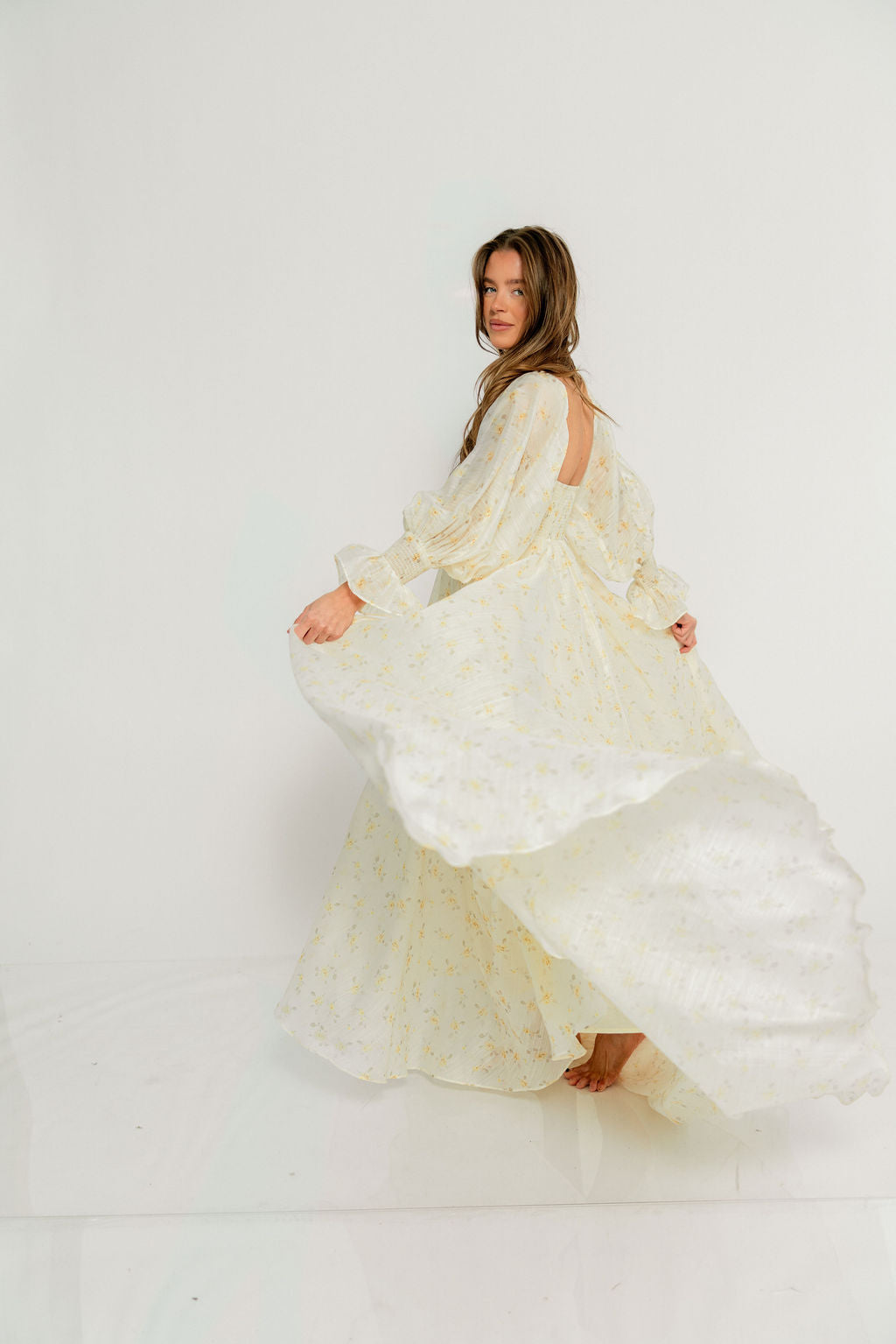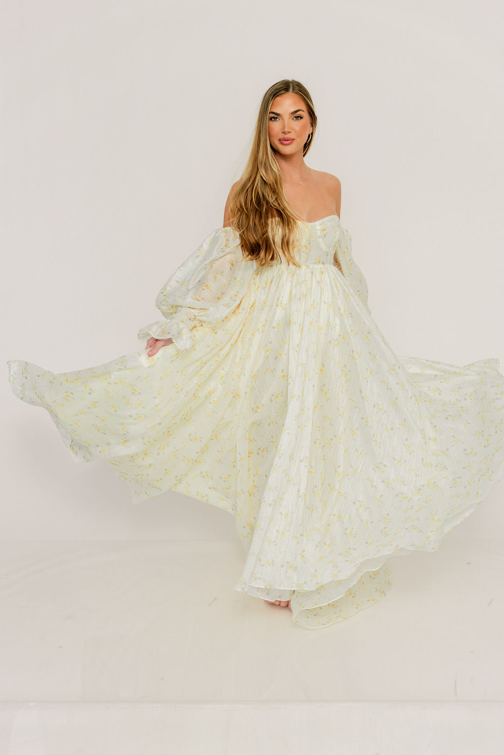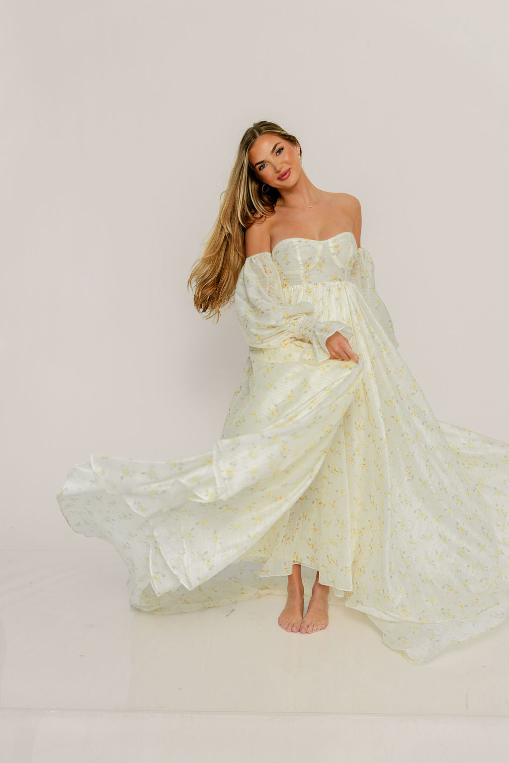 Delilah Maxi Dress with Train in Butter Yellow - Bump Friendly *2/9 PRE-ORDER*