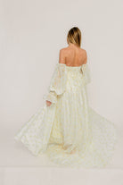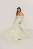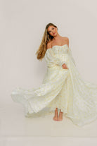 This gown deserves the word breathtaking. Meet the Delilah Maxi, an absolutely stunning statement dress that is both whimsical and romantic. This premium gown is crafted from eight yards of lightweight floral material, with a bustier-style bodice, swoon-worthy skirt and train, and sheer sleeves that can be worn on or off the shoulder depending on your mood! The Delilah Dress is a centerpiece of a dress and perfect for every body type, including expecting mamas. (P.S. it makes an incredible client closet dress for photographers!)