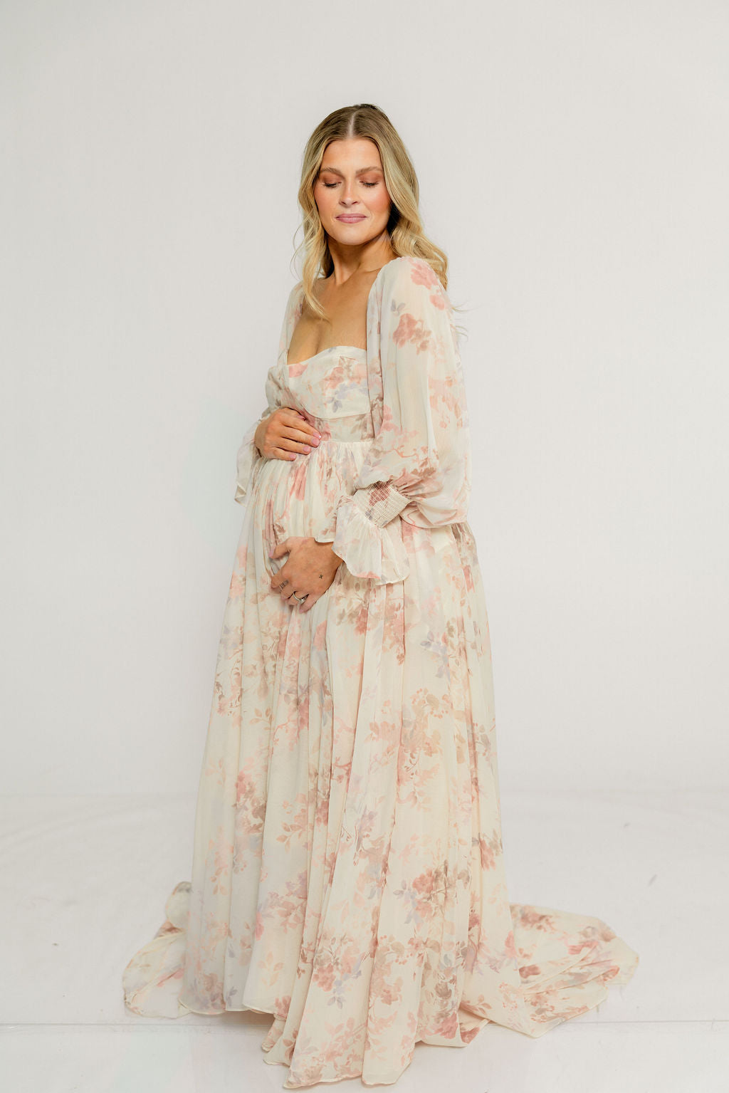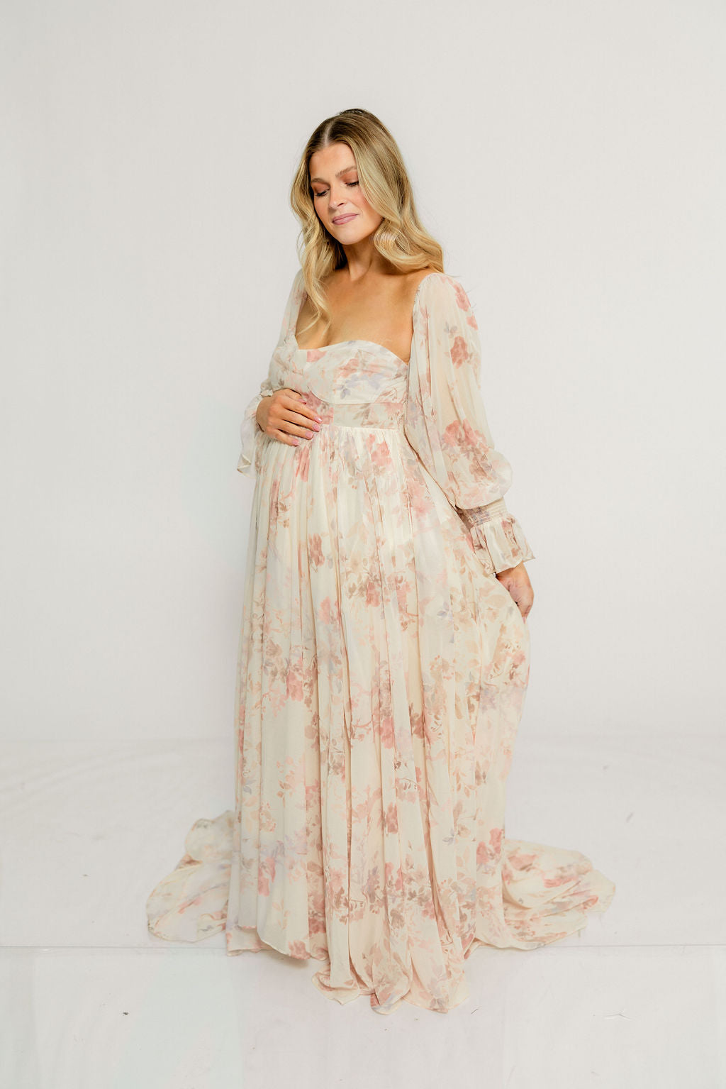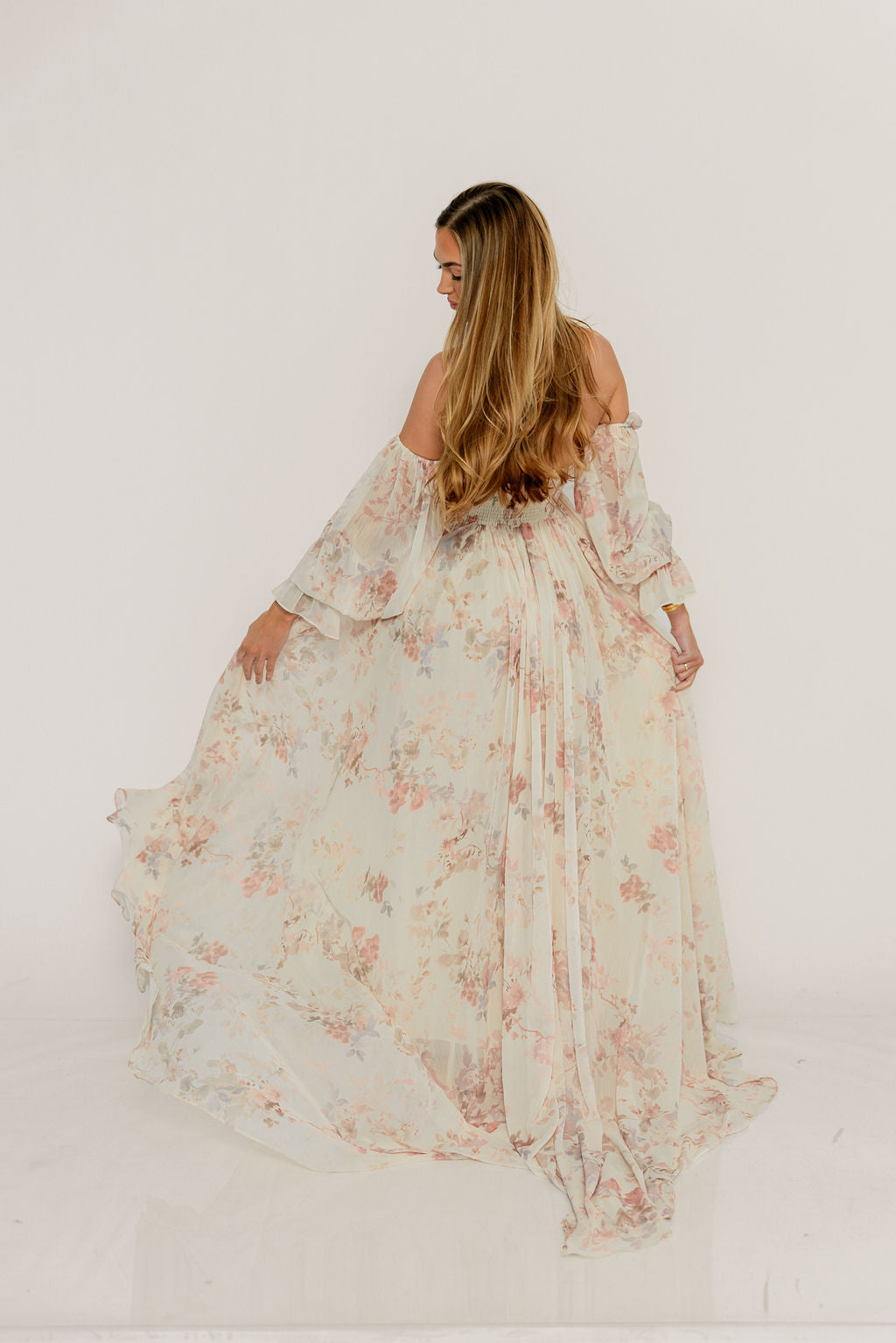 Delilah Maxi Dress with Train in Ivory - Bump Friendly *2/9 PRE-ORDER*