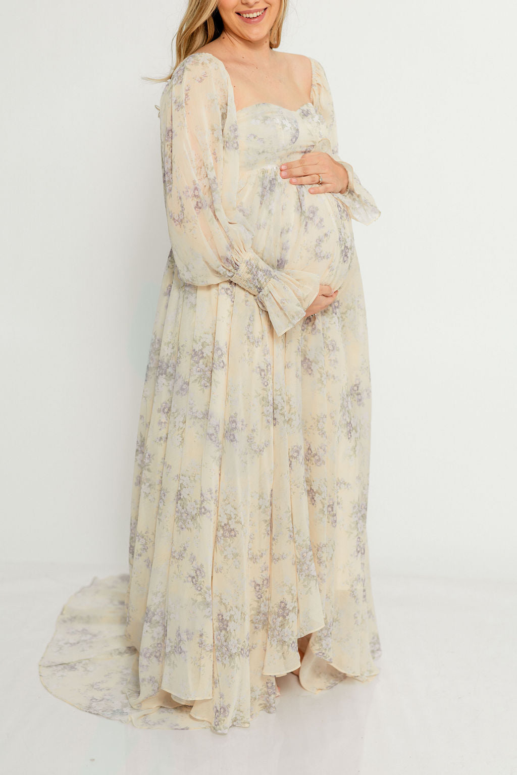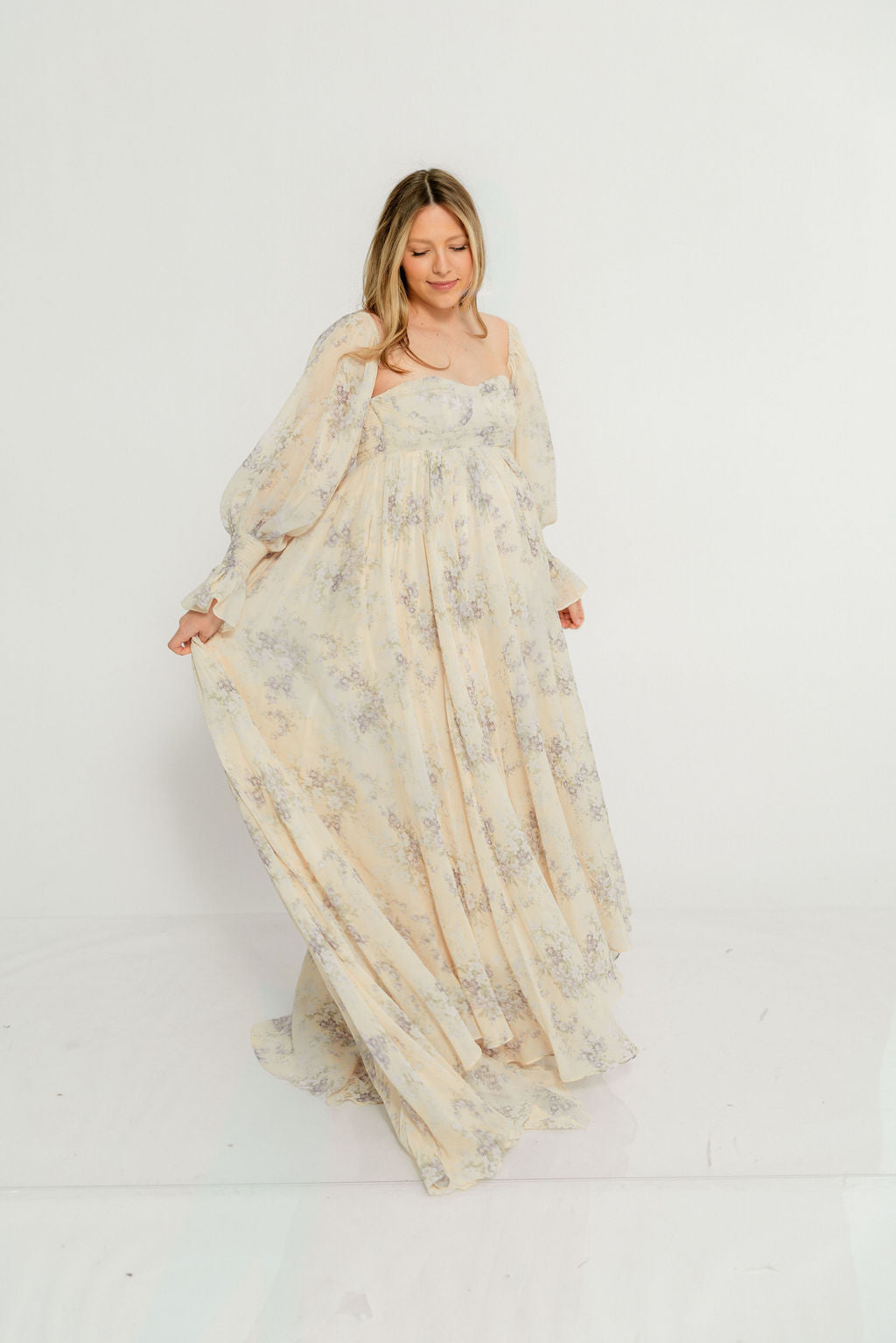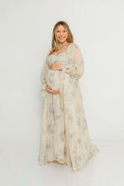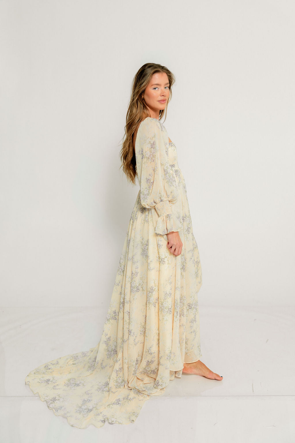 Delilah Maxi Dress with Train in Muted Peach Floral - Bump Friendly *2/5 PRE-ORDER*