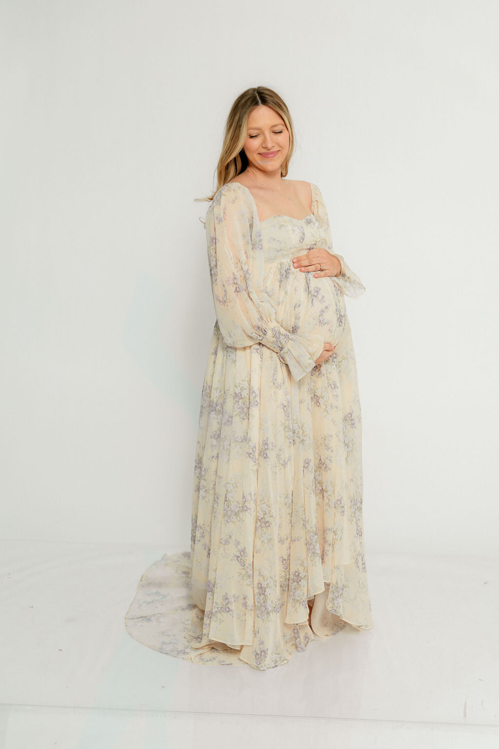 This gown deserves the word breathtaking. Meet the Delilah Maxi, an absolutely stunning statement dress that is both whimsical and romantic. This premium gown is crafted from eight yards of lightweight floral material, with a bustier-style bodice, swoon-worthy skirt and train, and sheer sleeves that can be worn on or off the shoulder depending on your mood! The Delilah Dress is a centerpiece of a dress and perfect for every body type, including expecting mamas. (P.S. it makes an incredible client closet dress for photographers!)