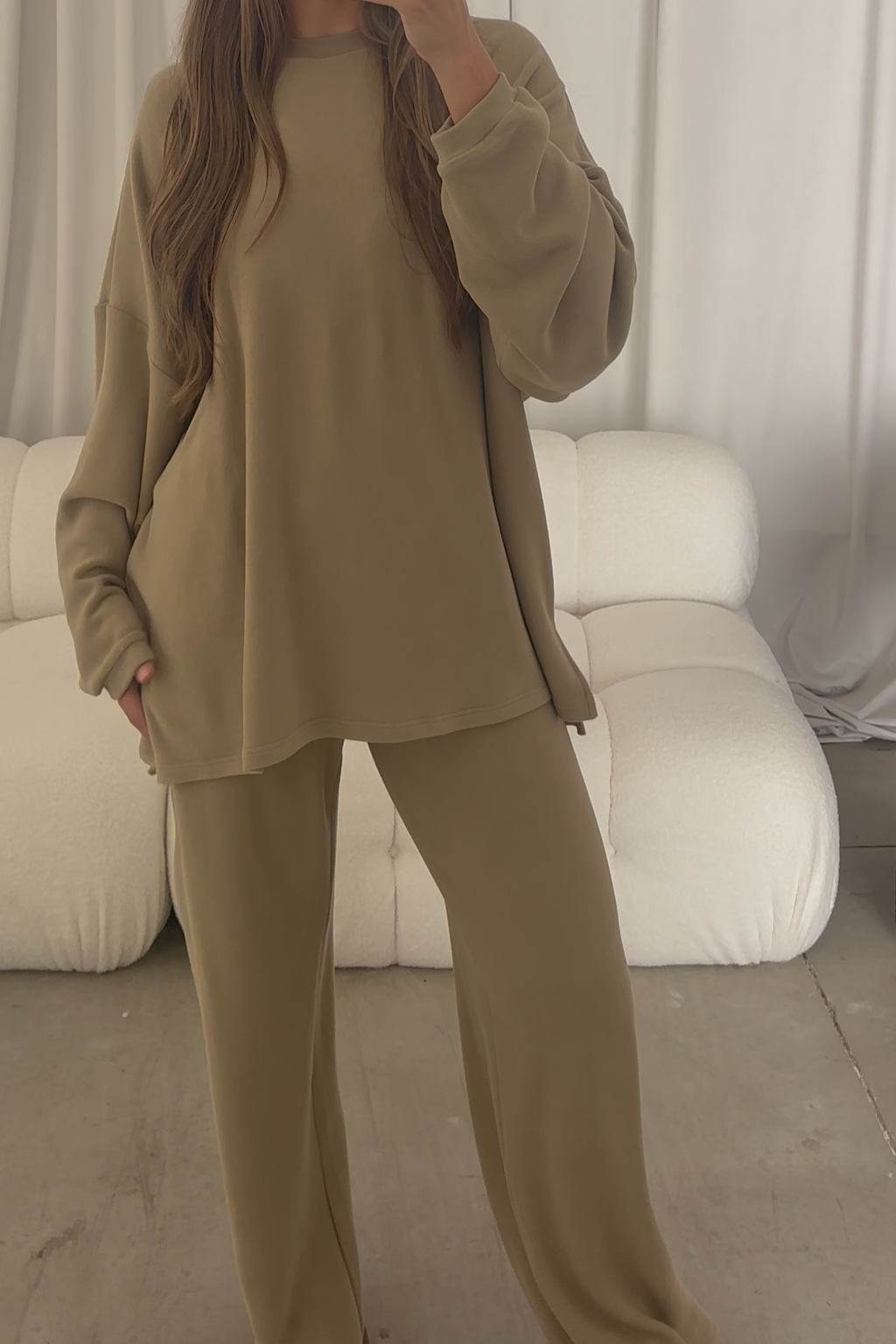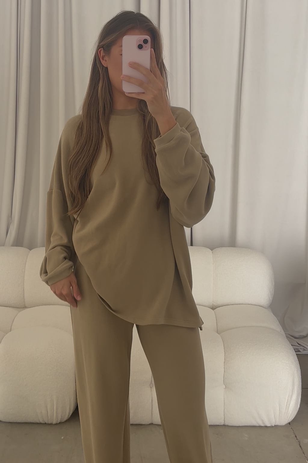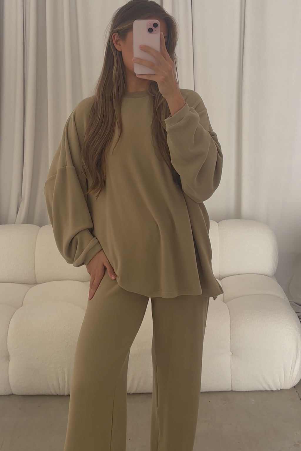 The Campbell Pants are going to be your go-to all year long! These cozy fleece pants offer a comfortable elasticated waistband and wide leg silhouette, they pair perfectly with a cropped tee or our matching Naomi Top.