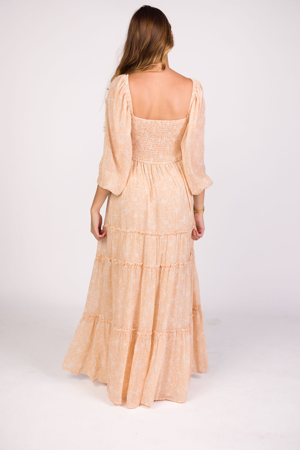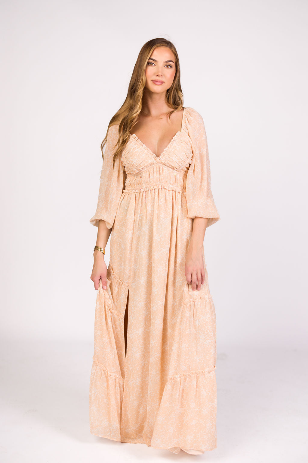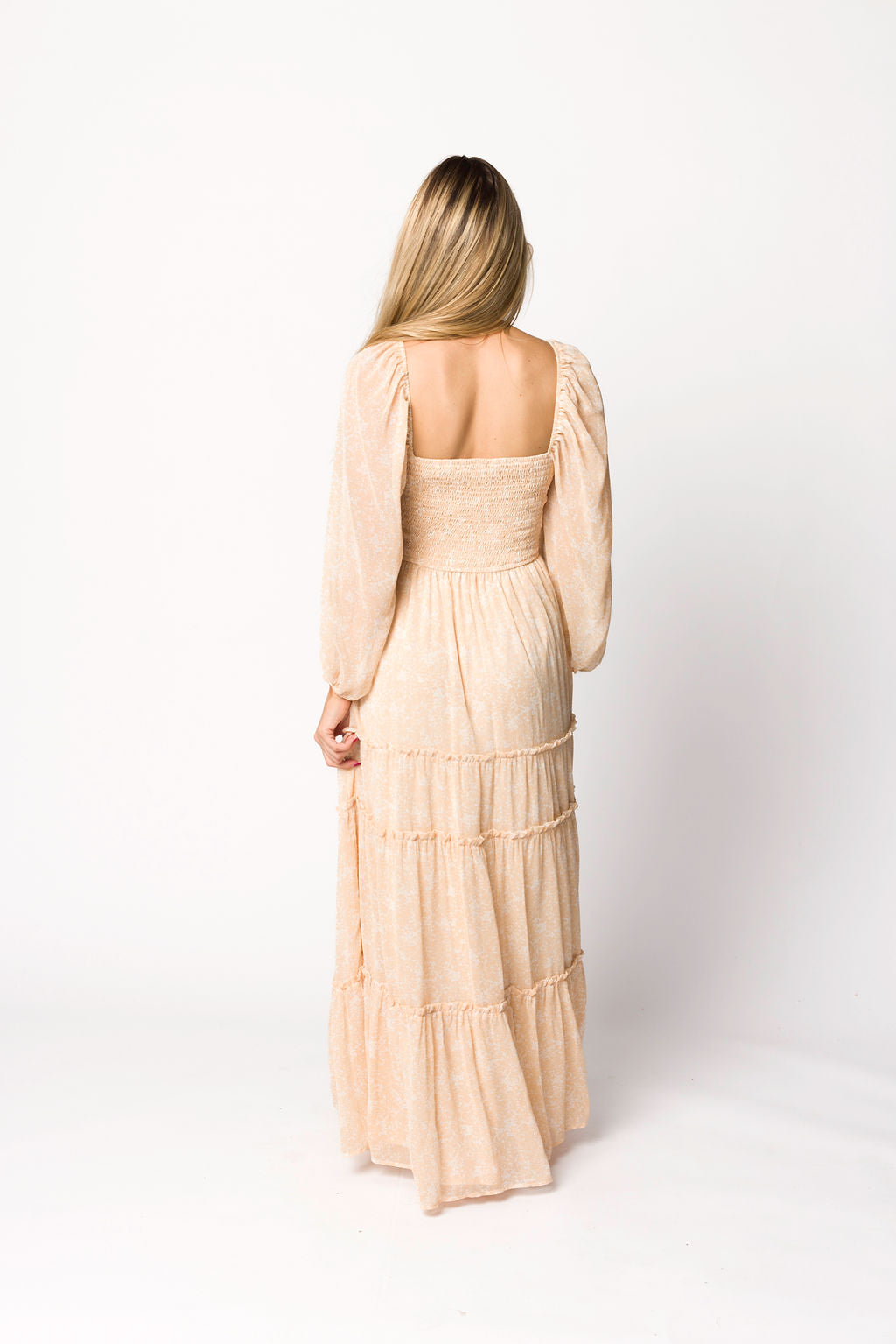 Daphne Long Sleeve Maxi Dress in Light Beige/White Floral - Bump Friendly