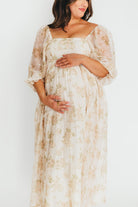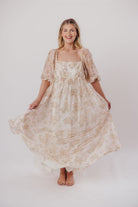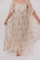 Mona Maxi Dress with Smocking in Cream Floral - Bump Friendly & Inclusive Sizing (S-3XL)