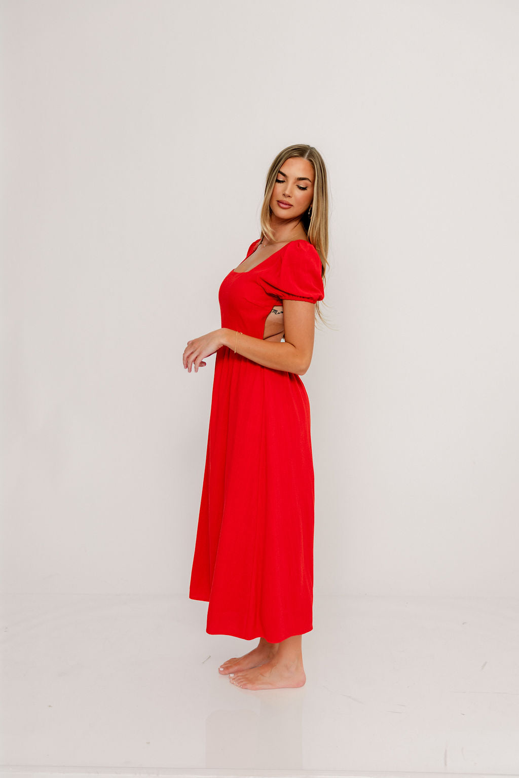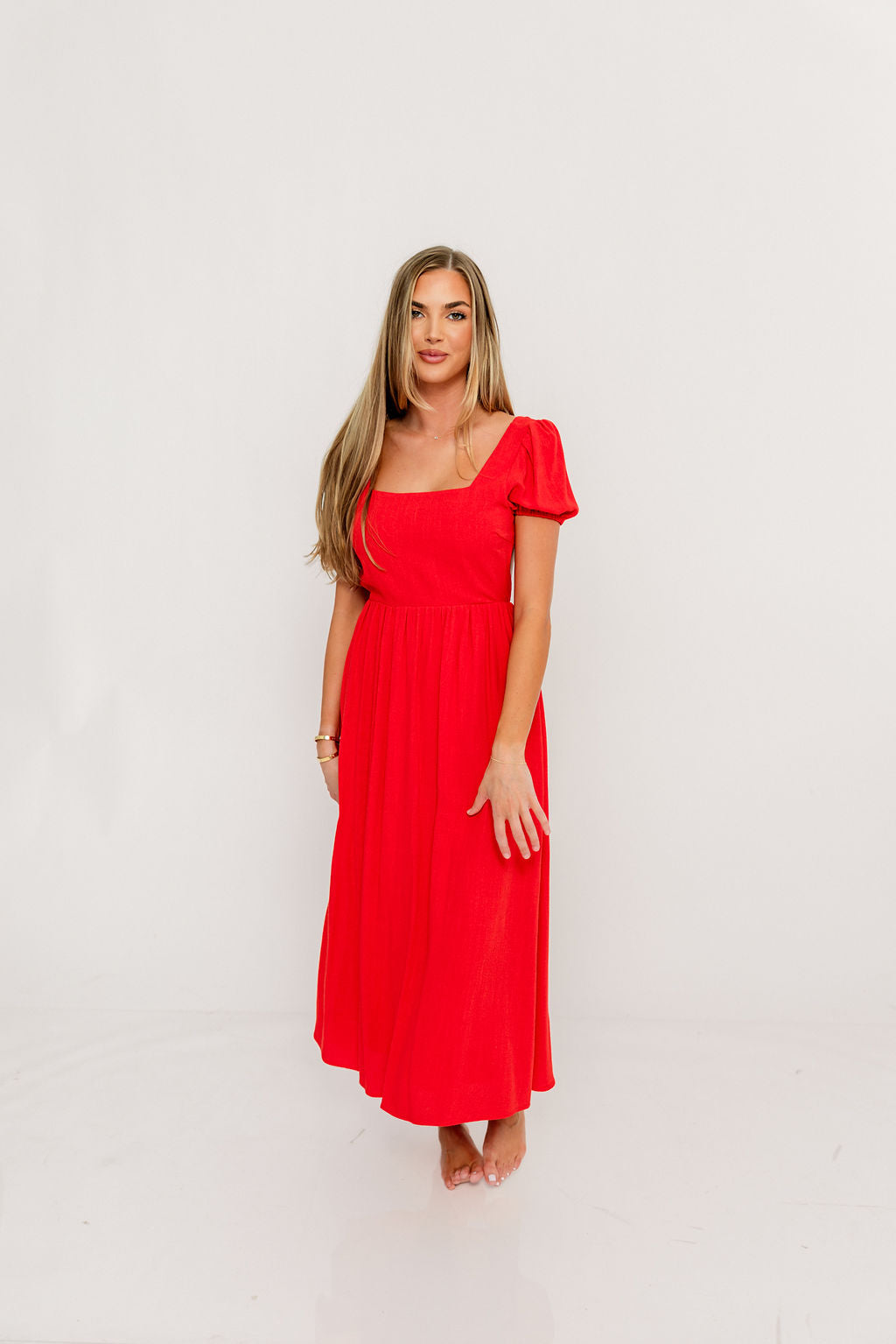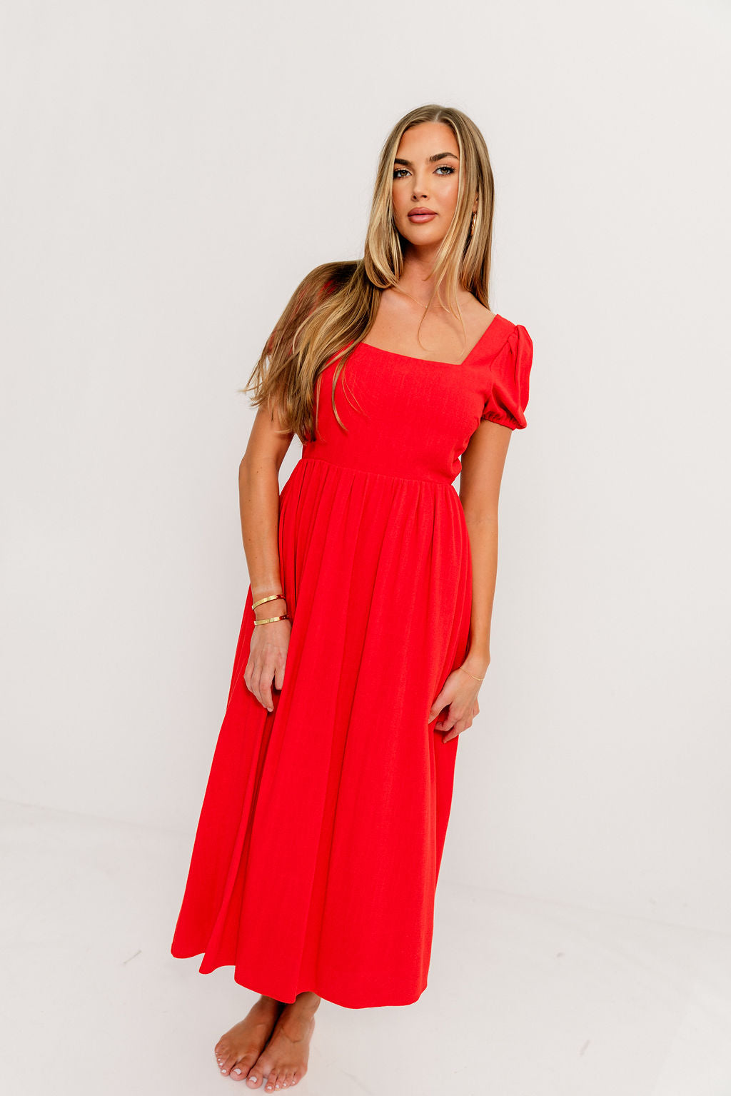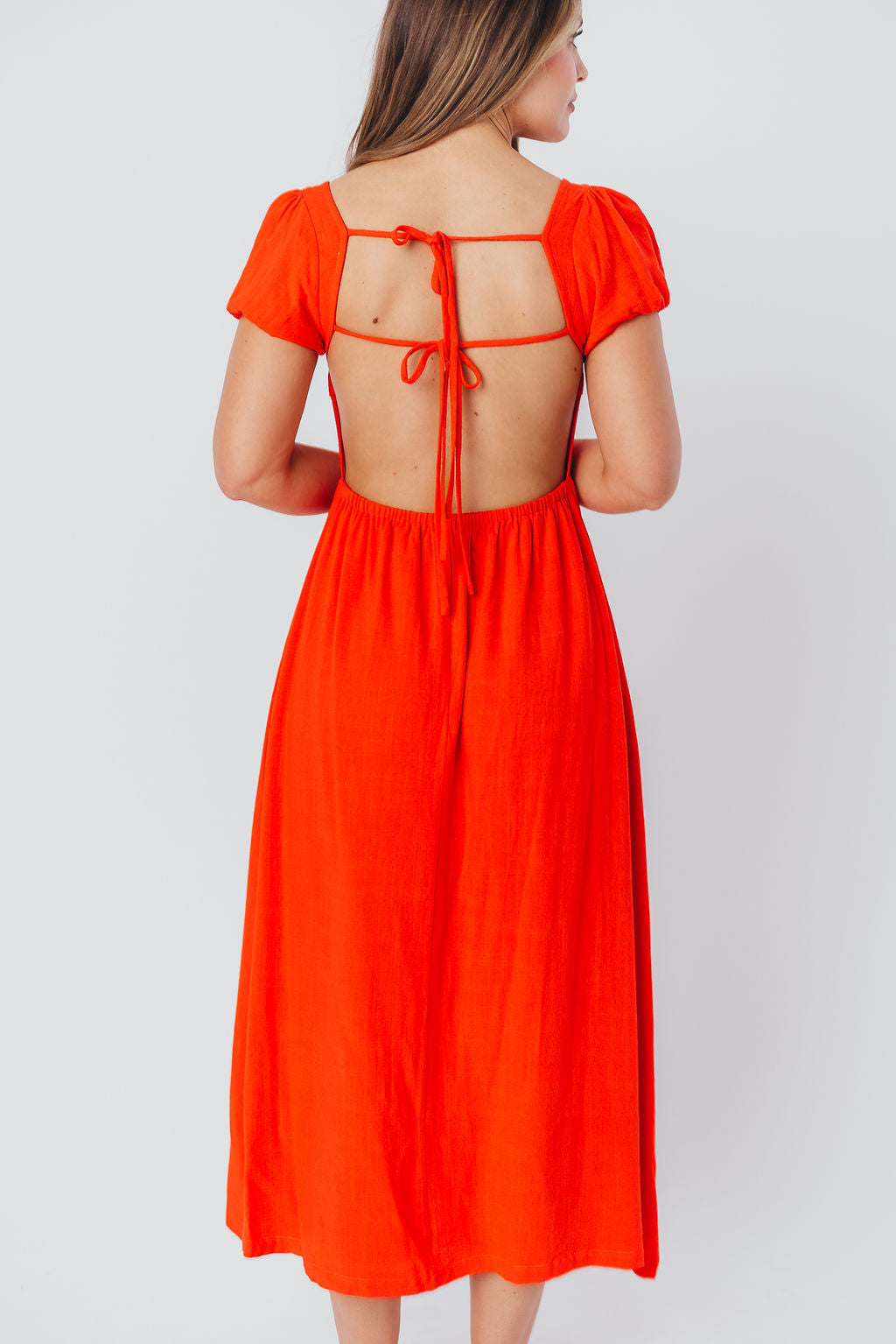 August Open Back Midi Dress in Poppy - Bump Friendly