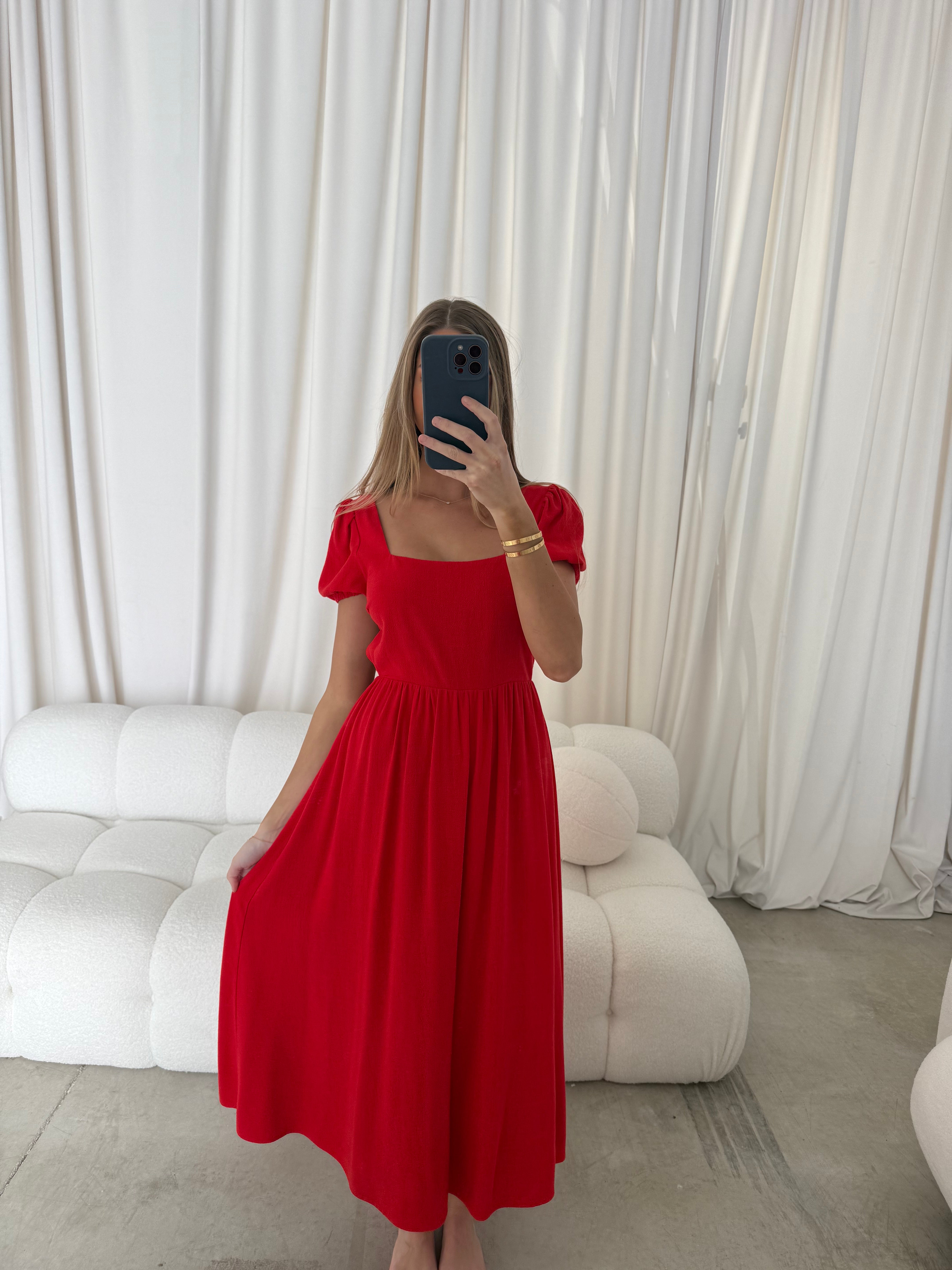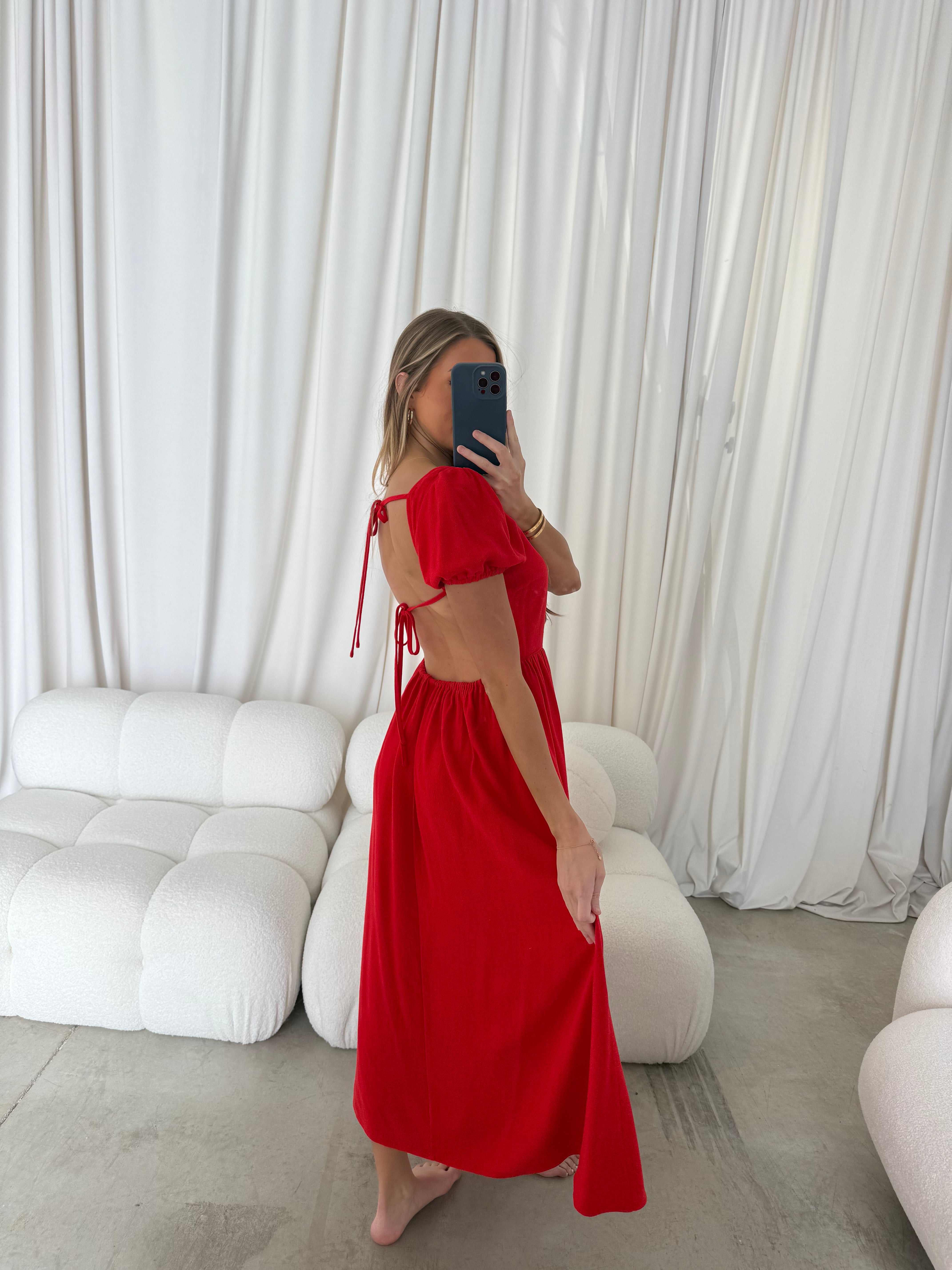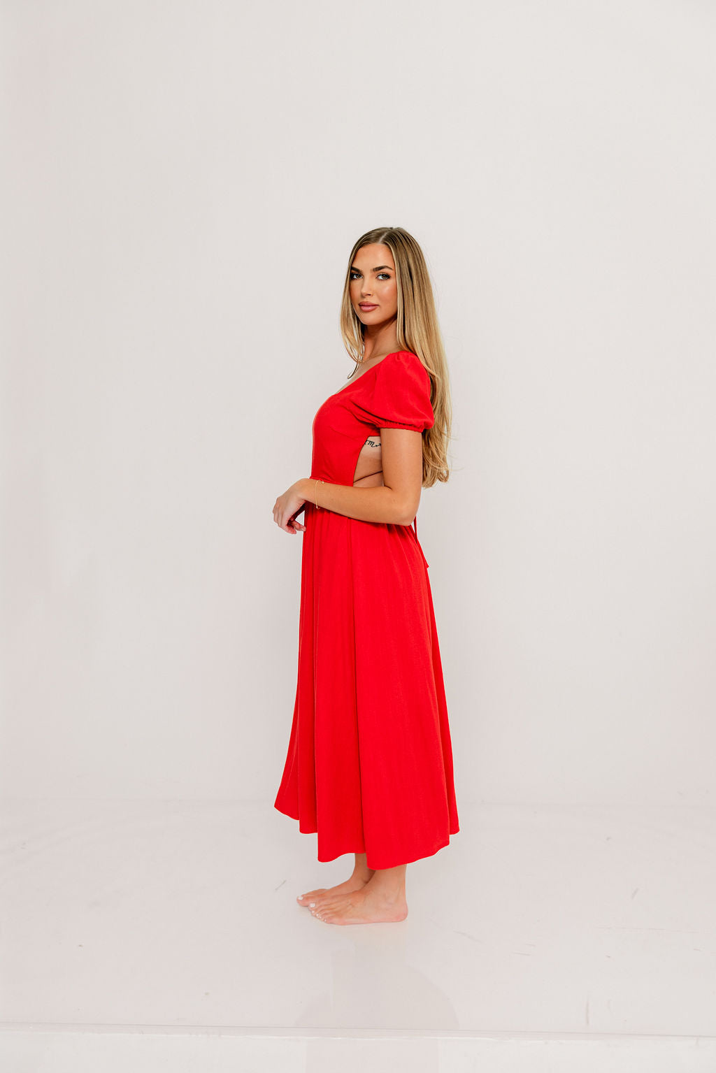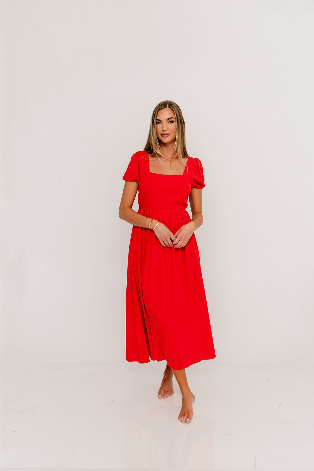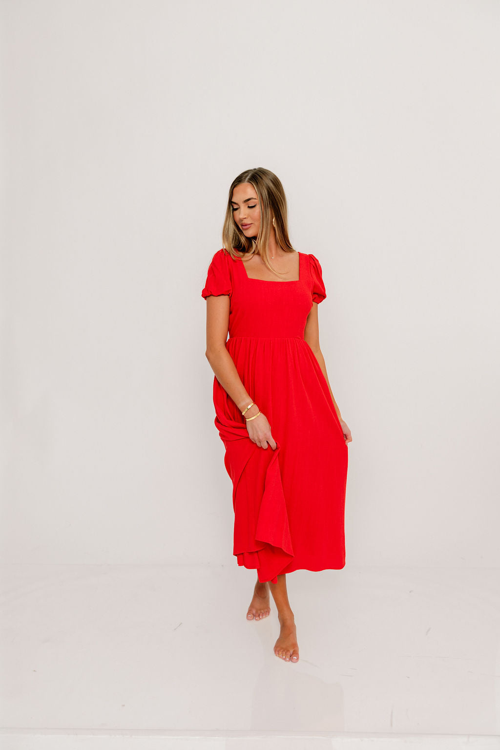 August Open Back Midi Dress in Poppy - Bump Friendly